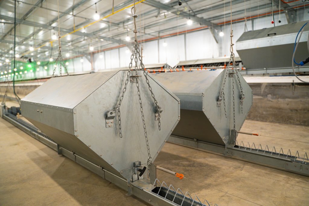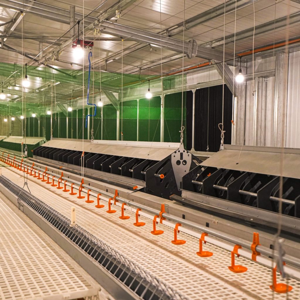 An automatic feeder system composed of – feed hopper/silo, driving device, corner, through and feed chain. The feed is distributed uniformly and reliably; all birds receive the same amount and quality of feed with minimum feed losses, cost-efficient, simple, easy cleaning, low labor and maintenance requirements.